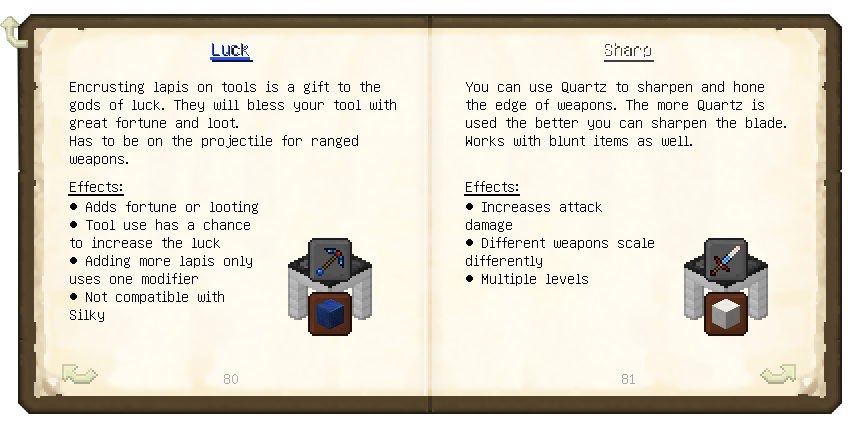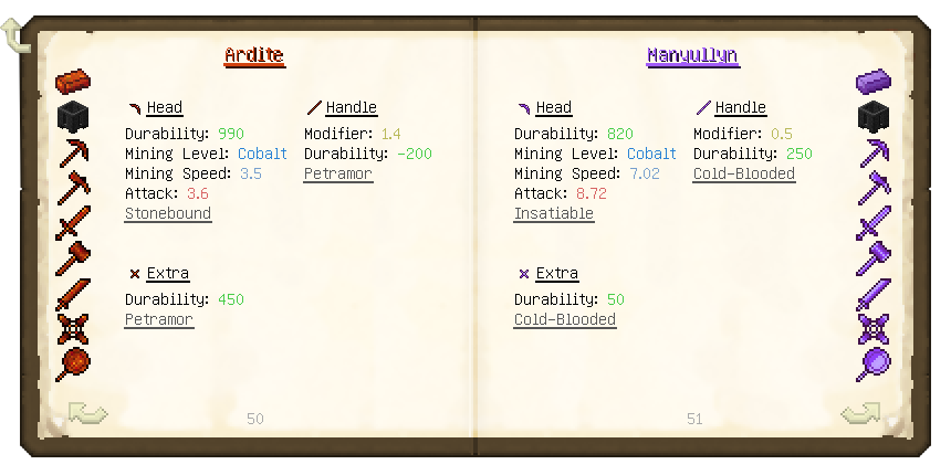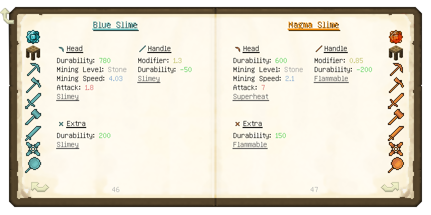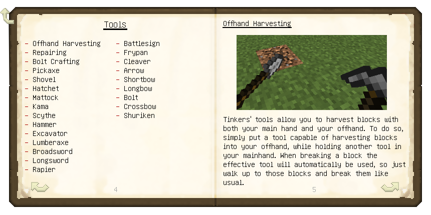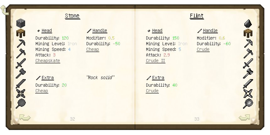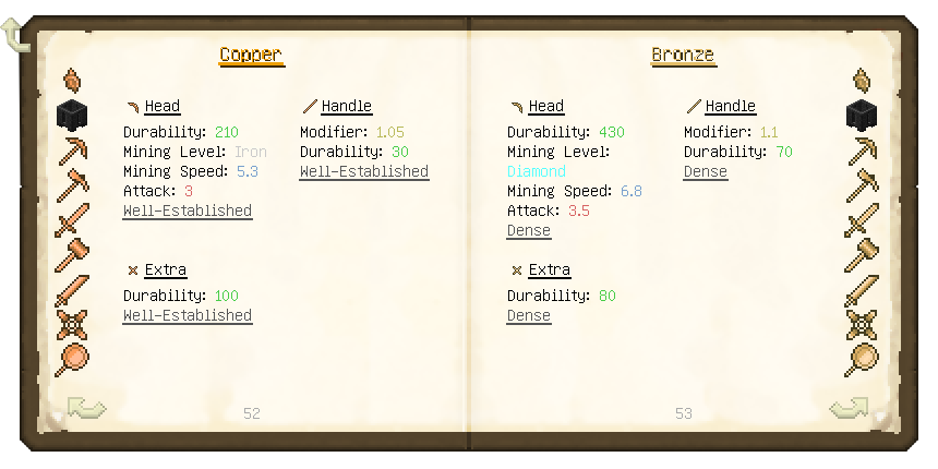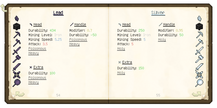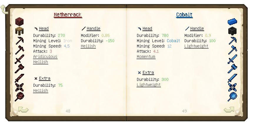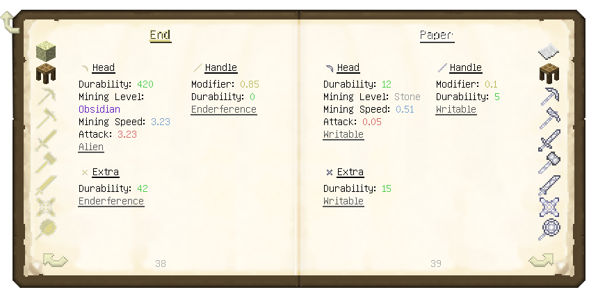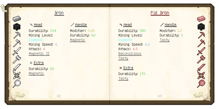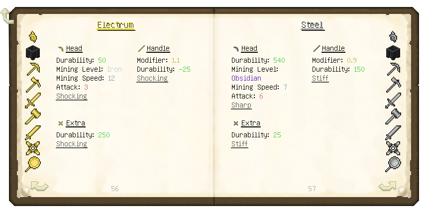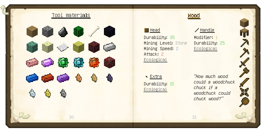 Home / Documentation / Book Index / 1.12 / Materials and You Materials and You (1.12) See below for images of all pages in Materials and You. Click a page to view in gallery mode. Tools Tool Materials Bow Materials Modifiers Multiblock