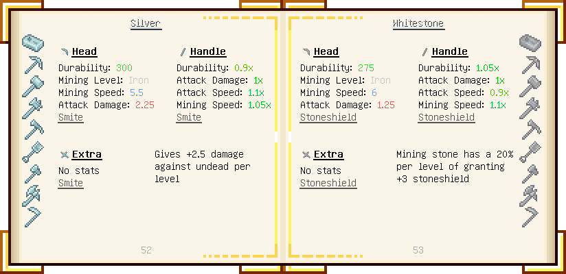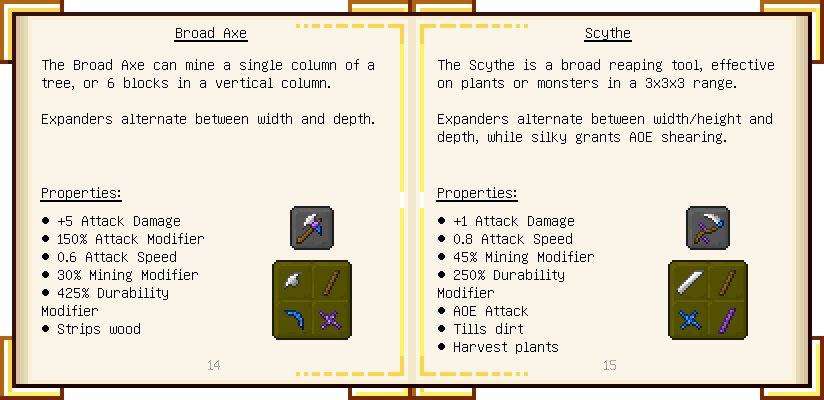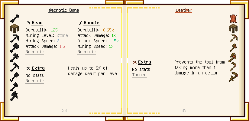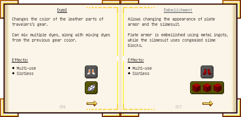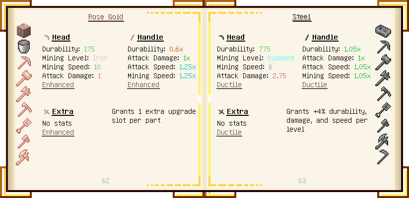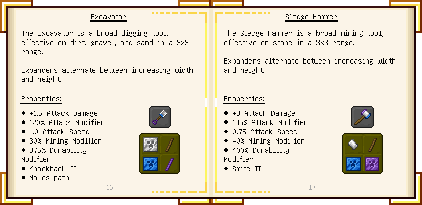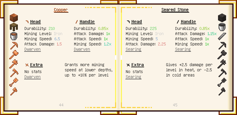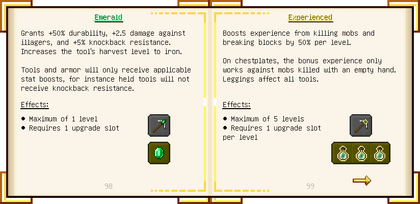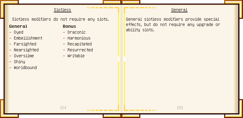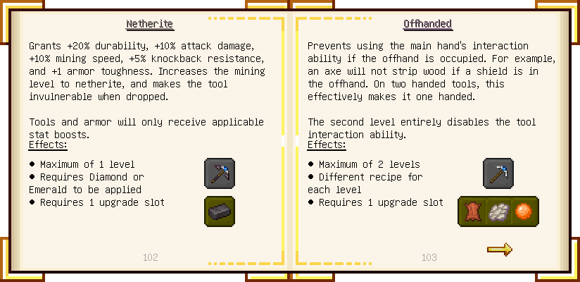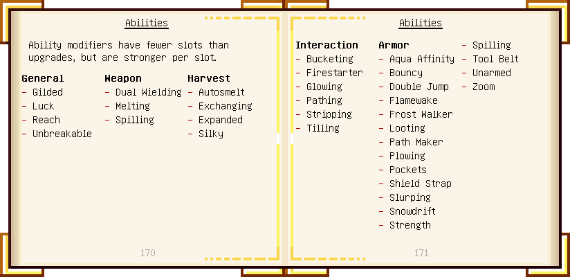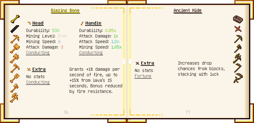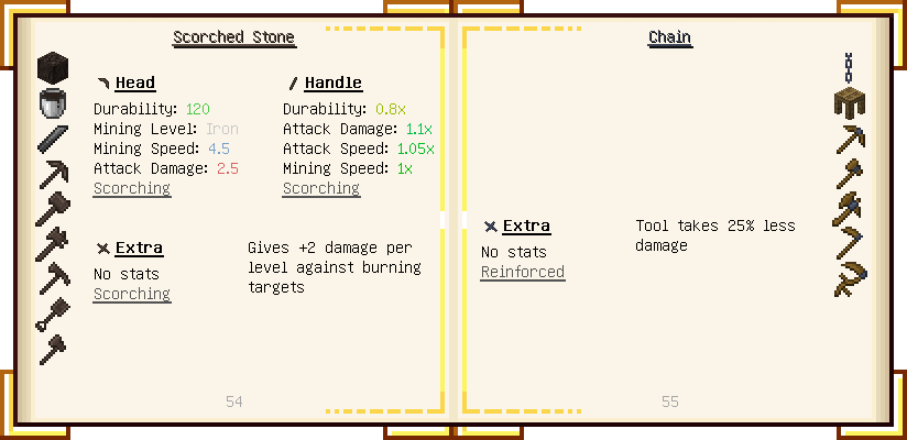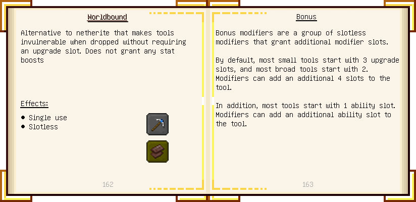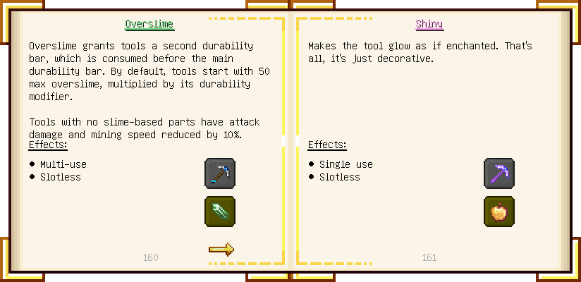 Home / Documentation / Book Index / 1.16 / Encyclopedia of Tinkering Encyclopedia of Tinkering (1.16) Tinkers' Gadgetry See below for images of all pages in Encyclopedia of Tinkering. Click a page to view in gallery mode. Tools Armor Materials Slimeskulls Upgrades Defense Slotless Abilities
