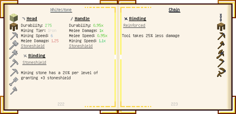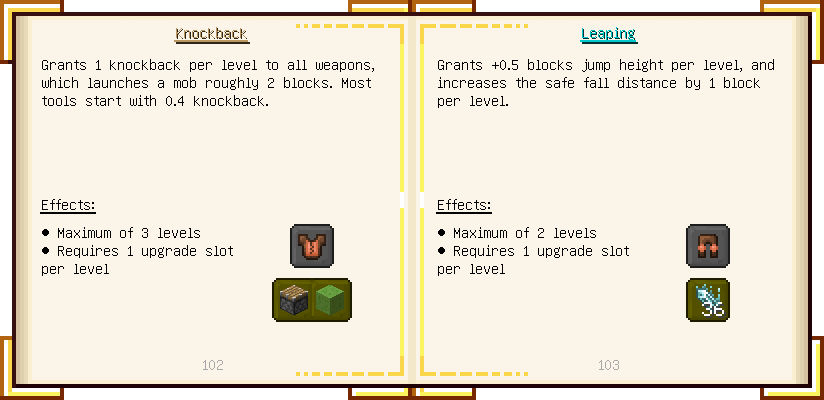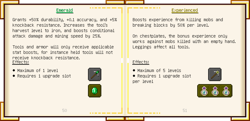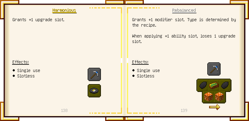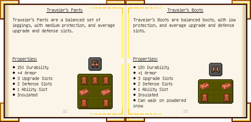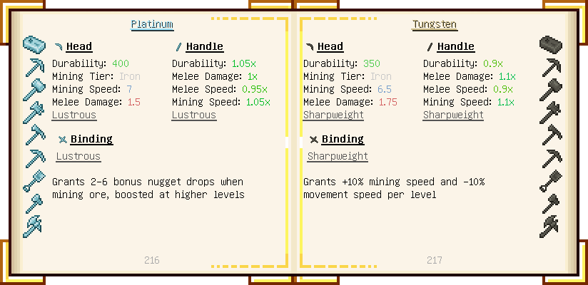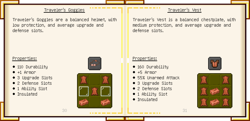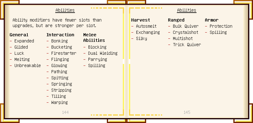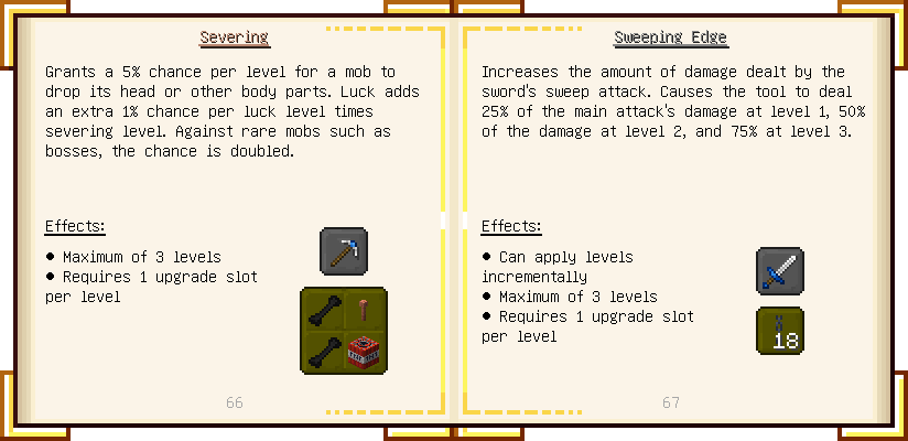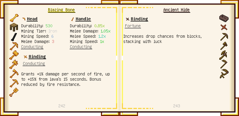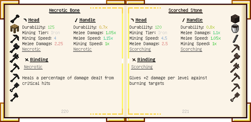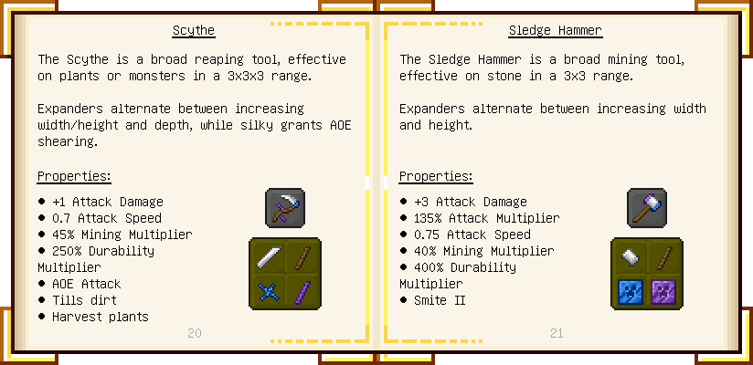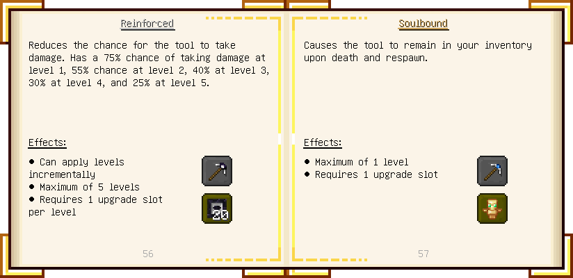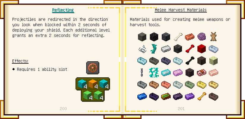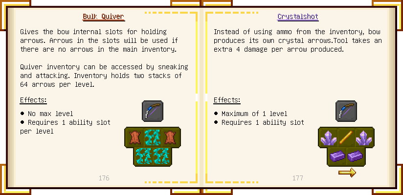 Home / Documentation / Book Index / 1.18 / Encyclopedia of Tinkering Encyclopedia of Tinkering (1.18) Tinkers' Gadgetry See below for images of all pages in Encyclopedia of Tinkering. Click a page to view in gallery mode. Tools Armor Upgrades Defense Slotless Abilities Melee Harvest Materials Ranged Materials Slimeskulls