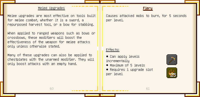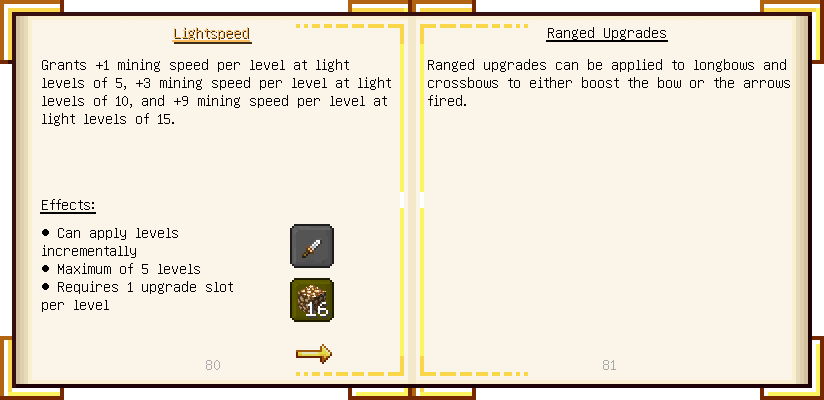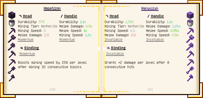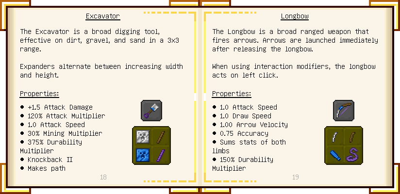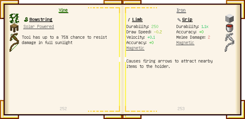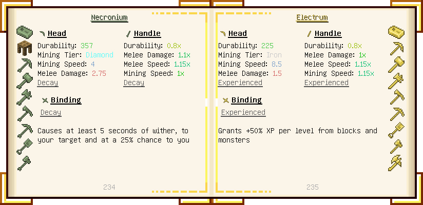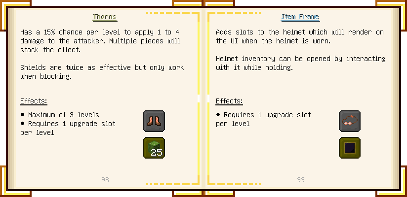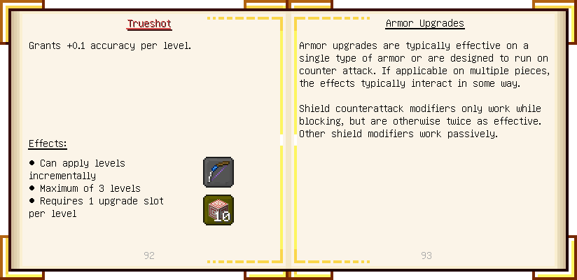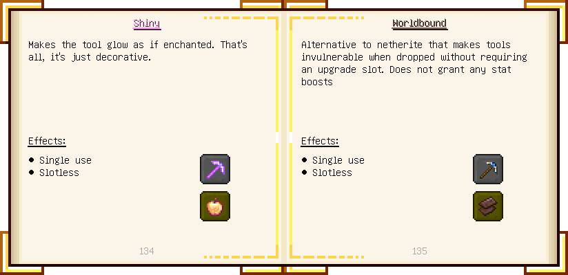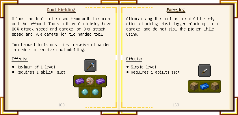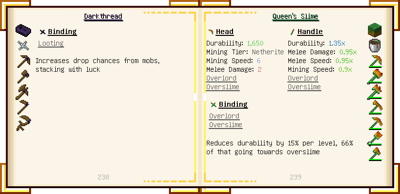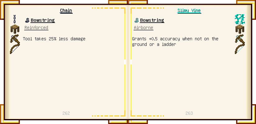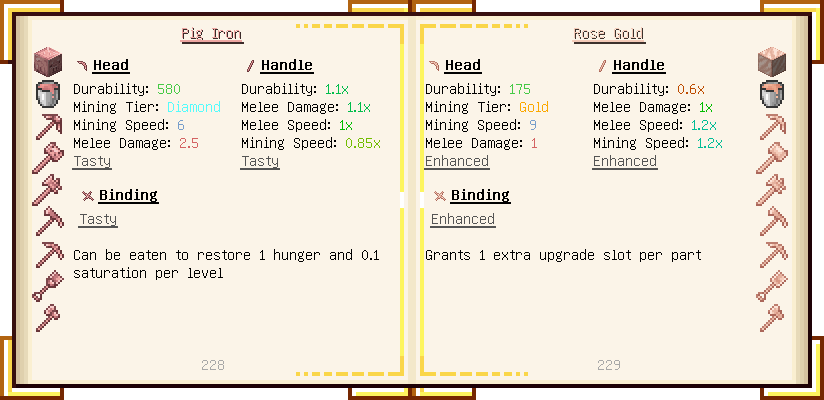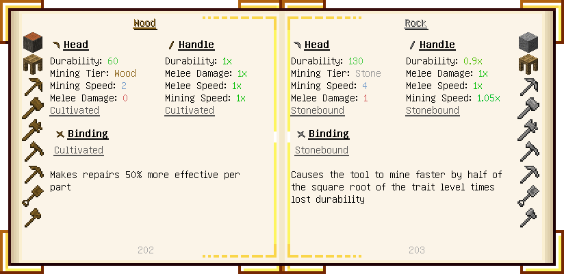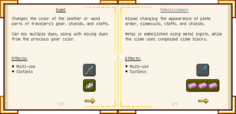 Home / Documentation / Book Index / 1.18 / Encyclopedia of Tinkering Encyclopedia of Tinkering (1.18) Tinkers' Gadgetry See below for images of all pages in Encyclopedia of Tinkering. Click a page to view in gallery mode. Tools Armor Upgrades Defense Slotless Abilities Melee Harvest Materials Ranged Materials Slimeskulls