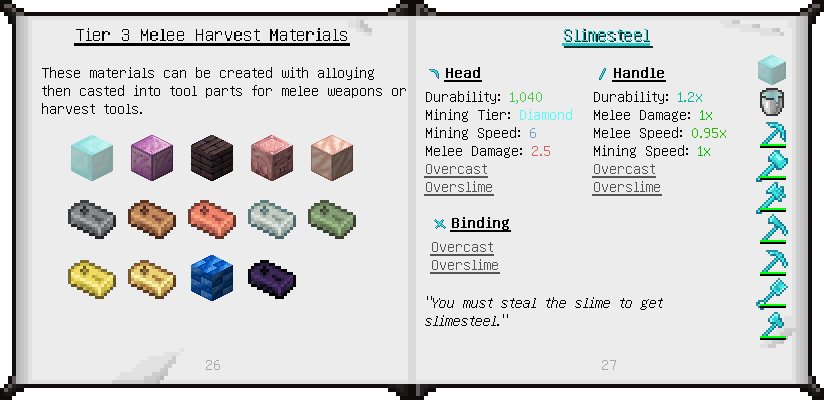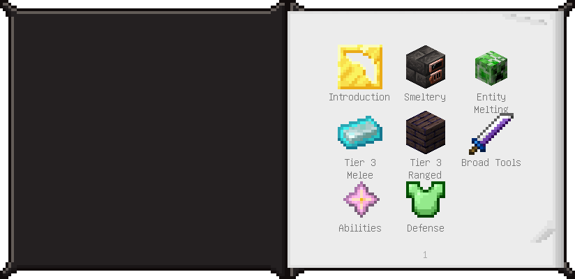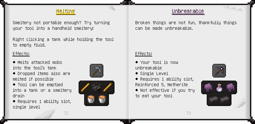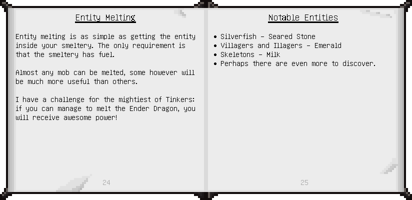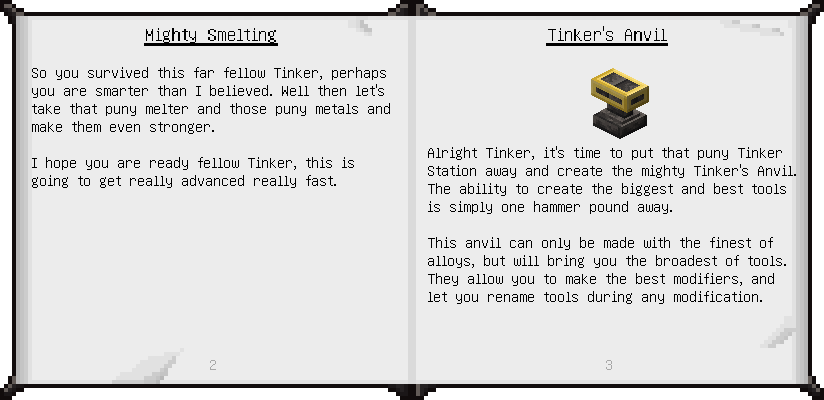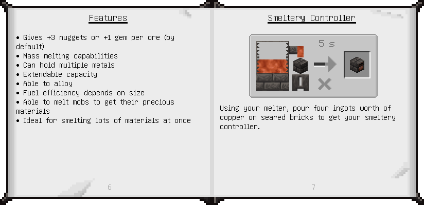 Home / Documentation / Book Index / 1.18 / Mighty Smelting Mighty Smelting (1.18) Puny Smelting Fantastic Foundry See below for images of all pages in Mighty Smelting. Click a page to view in gallery mode. Smeltery Tier 3 Melee Harvest Tier 3 Ranged Broad Tools Abilities Defense