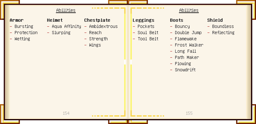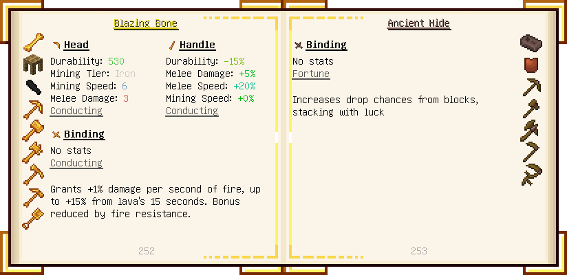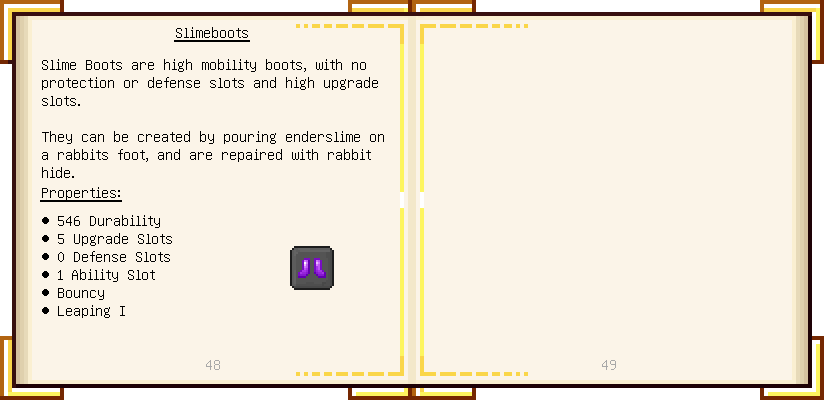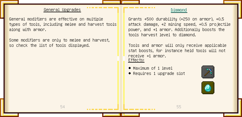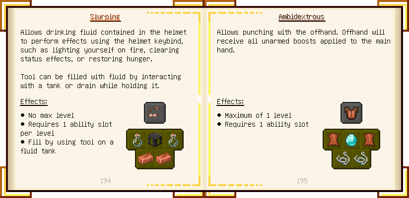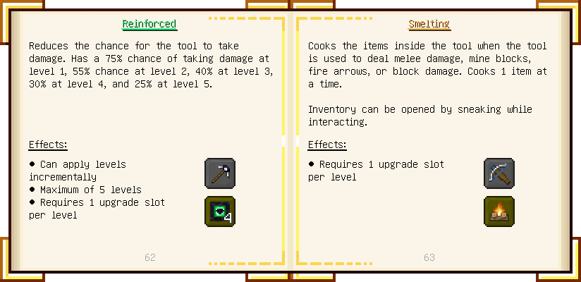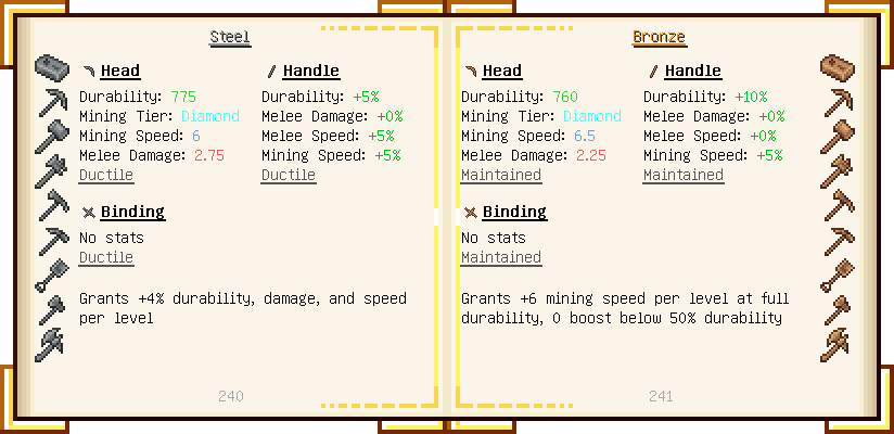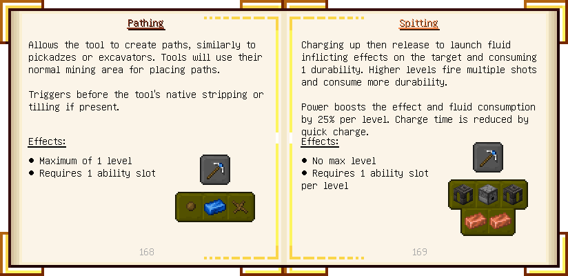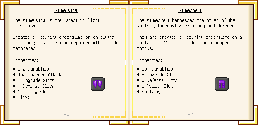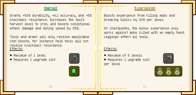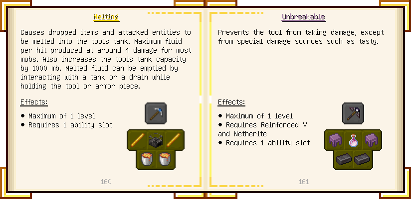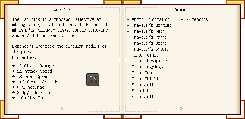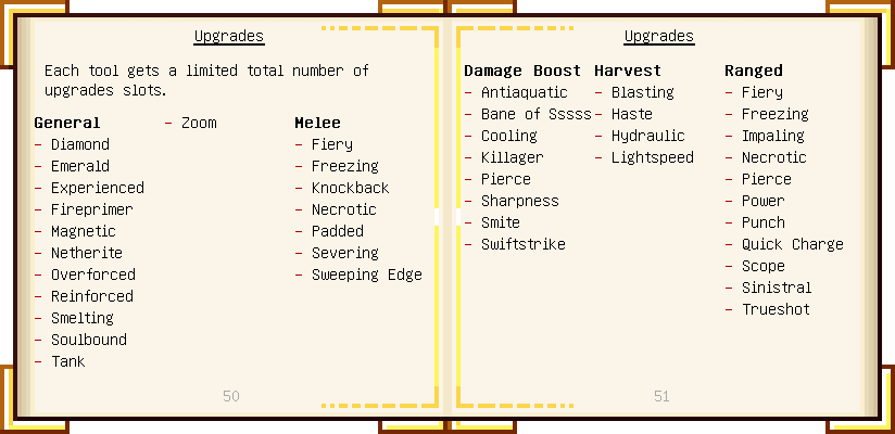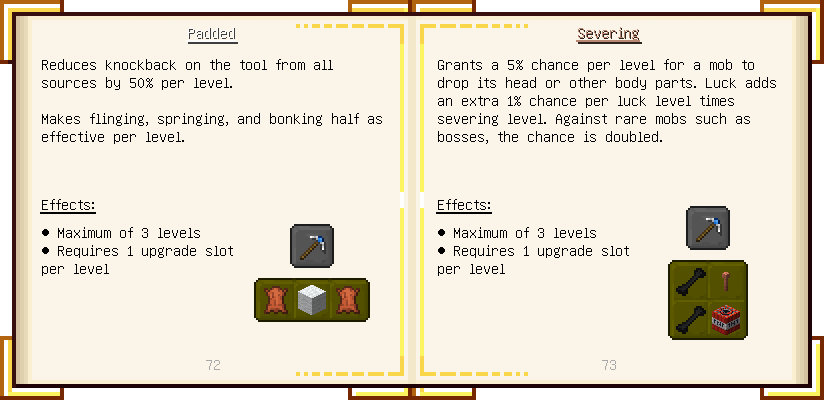 Home / Documentation / Book Index / 1.19 / Encyclopedia of Tinkering Encyclopedia of Tinkering (1.19) Tinkers' Gadgetry See below for images of all pages in Encyclopedia of Tinkering. Click a page to view in gallery mode. Tools Armor Upgrades Defense Slotless Abilities Melee Harvest Materials Ranged Materials Armor Materials Slimeskulls