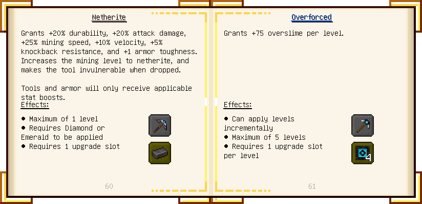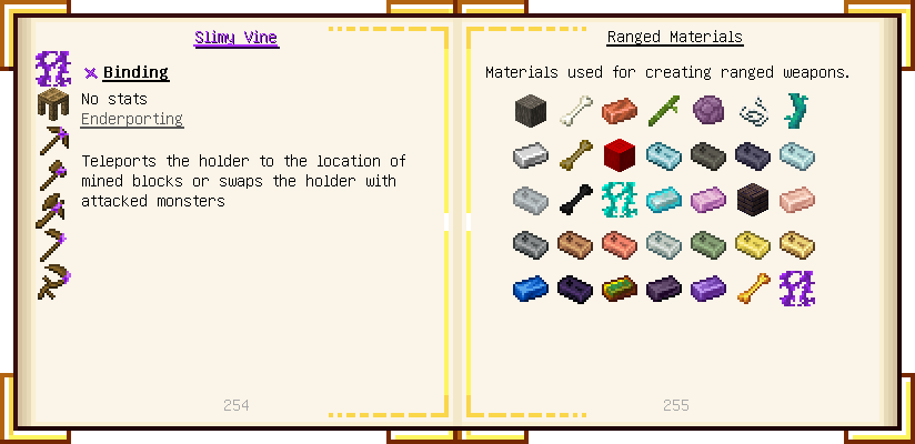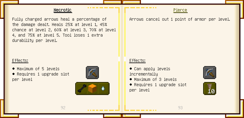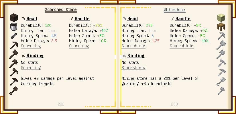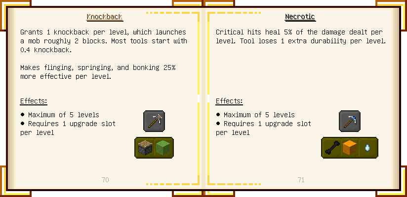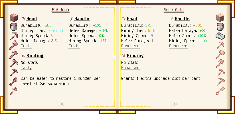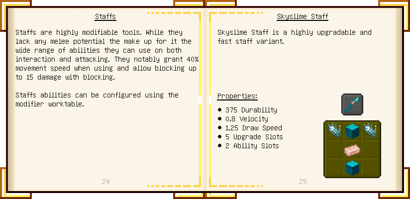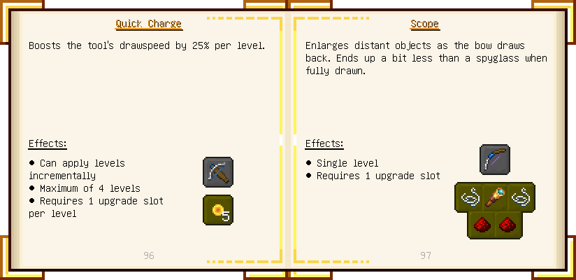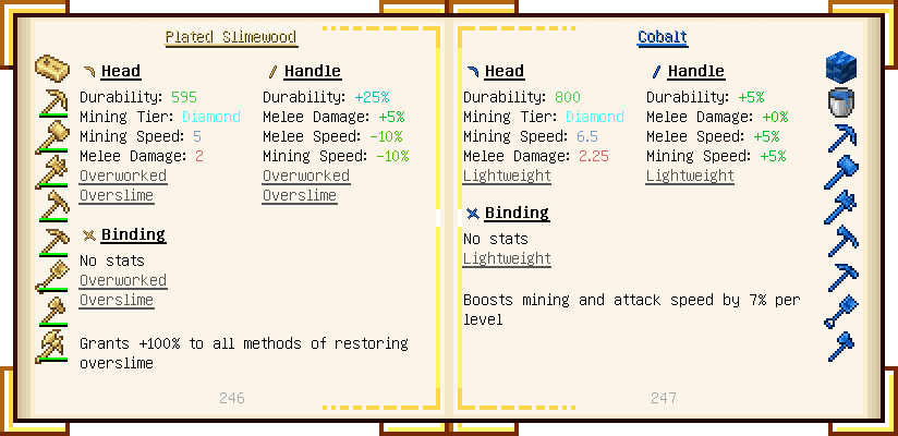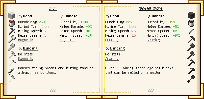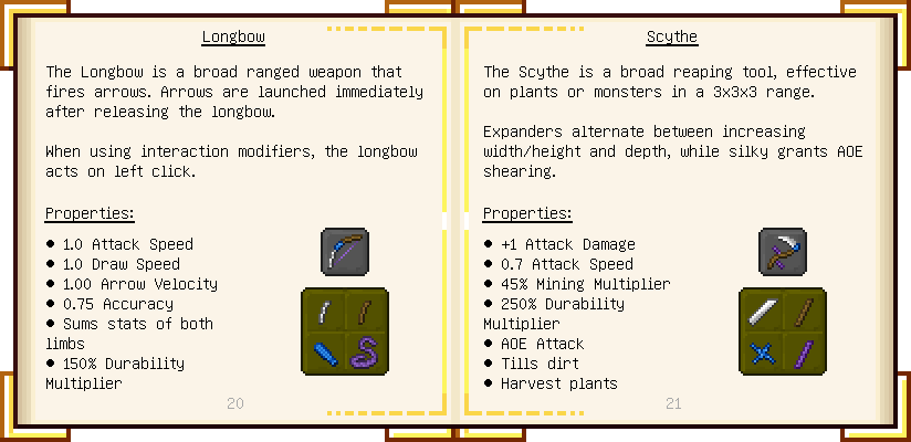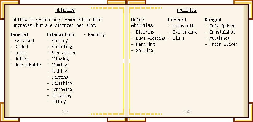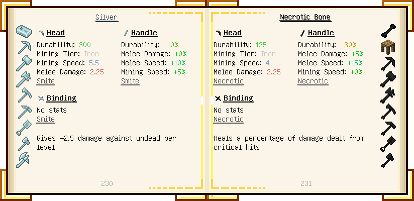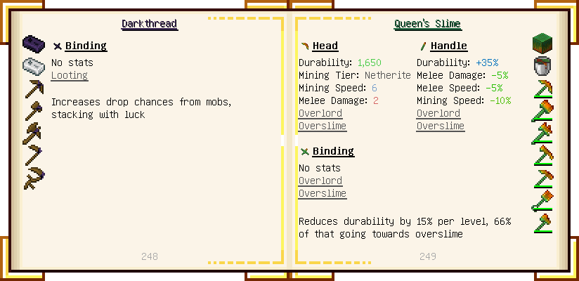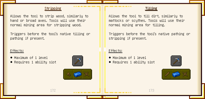 Home / Documentation / Book Index / 1.19 / Encyclopedia of Tinkering Encyclopedia of Tinkering (1.19) Tinkers' Gadgetry See below for images of all pages in Encyclopedia of Tinkering. Click a page to view in gallery mode. Tools Armor Upgrades Defense Slotless Abilities Melee Harvest Materials Ranged Materials Armor Materials Slimeskulls