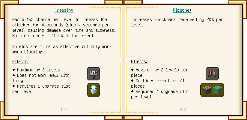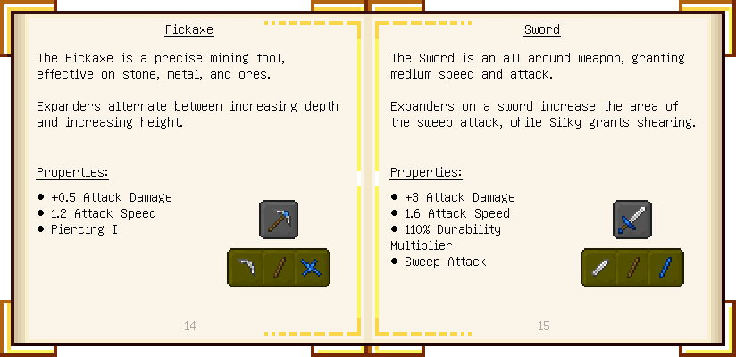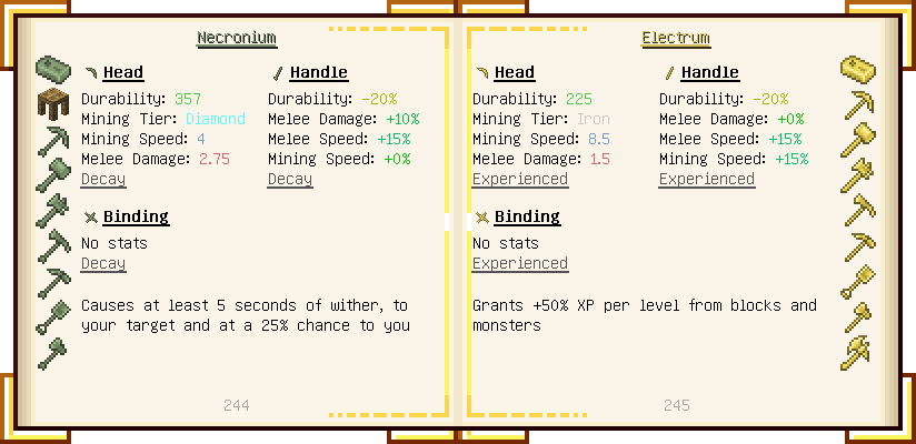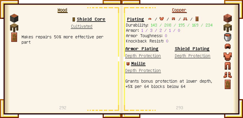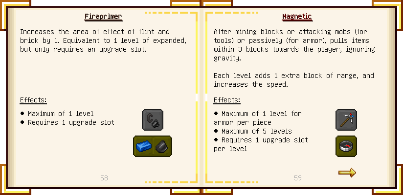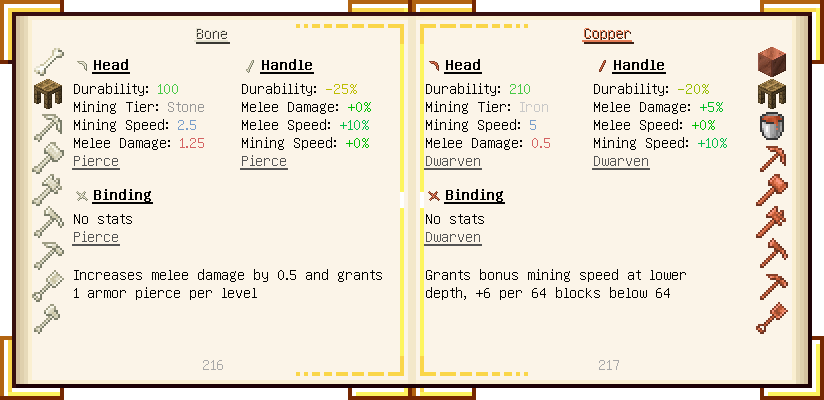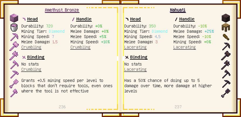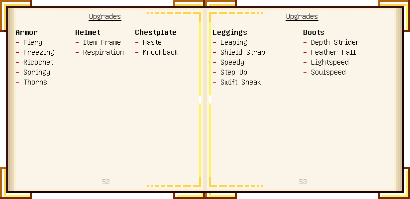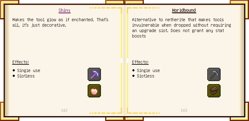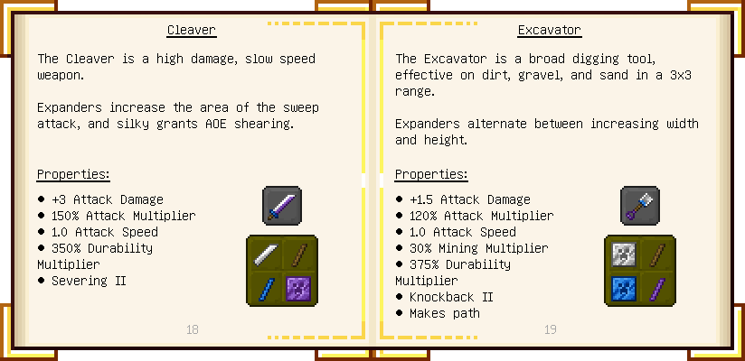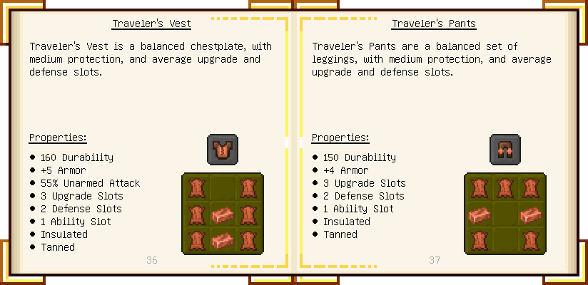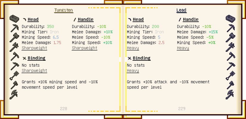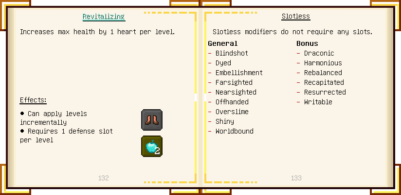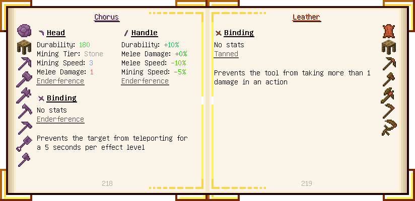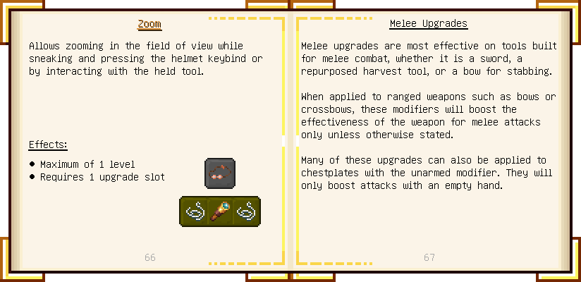 Home / Documentation / Book Index / 1.19 / Encyclopedia of Tinkering Encyclopedia of Tinkering (1.19) Tinkers' Gadgetry See below for images of all pages in Encyclopedia of Tinkering. Click a page to view in gallery mode. Tools Armor Upgrades Defense Slotless Abilities Melee Harvest Materials Ranged Materials Armor Materials Slimeskulls