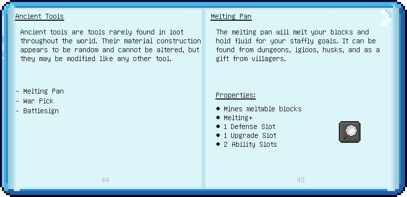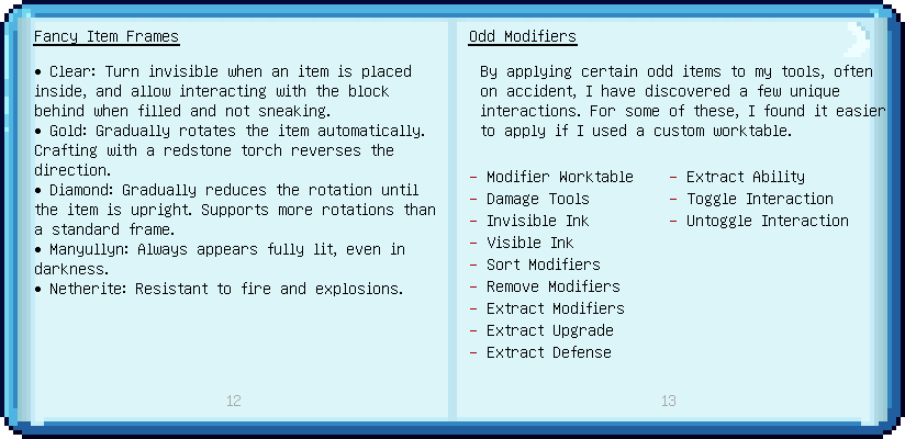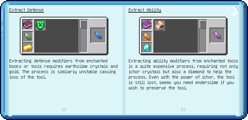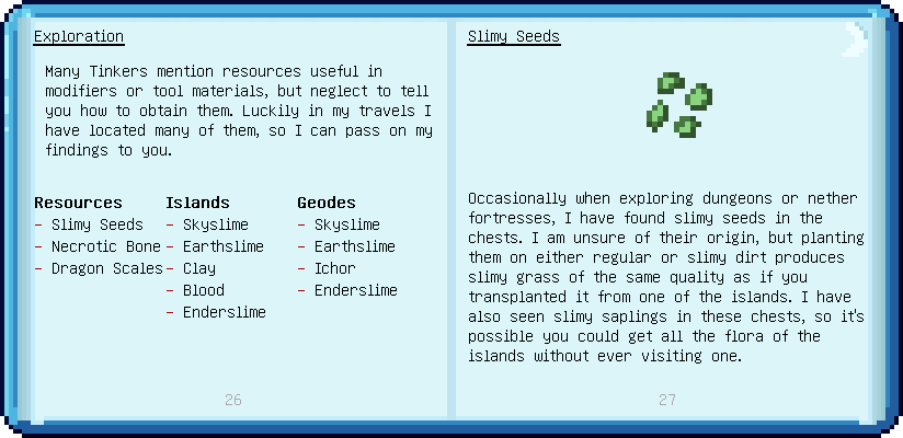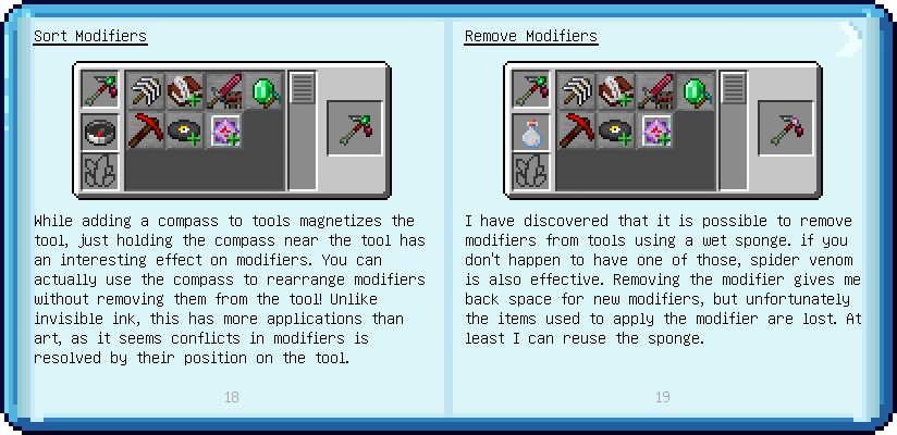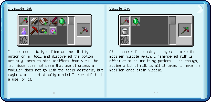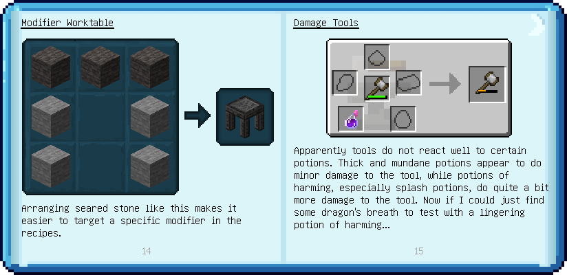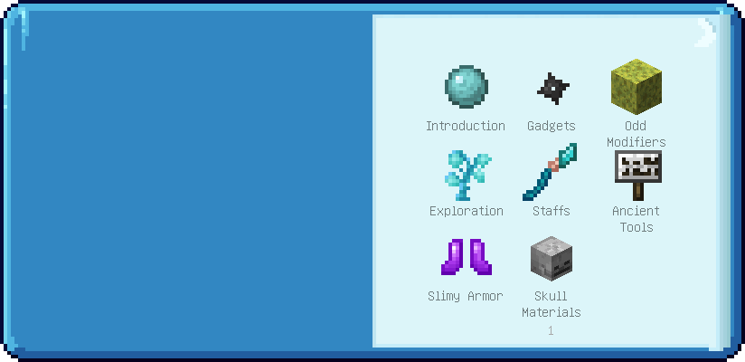 Home / Documentation / Book Index / 1.19 / Tinkers' Gadgetry Tinkers' Gadgetry (1.19) Fantastic Foundry Encyclopedia of Tinkering See below for images of all pages in Tinkers' Gadgetry. Click a page to view in gallery mode. Gadgets Odd Modifiers Exploration Staffs Ancient Tools Slimy Armor