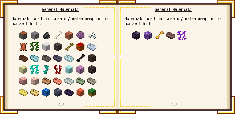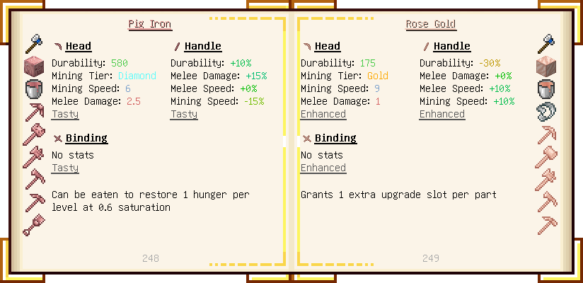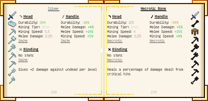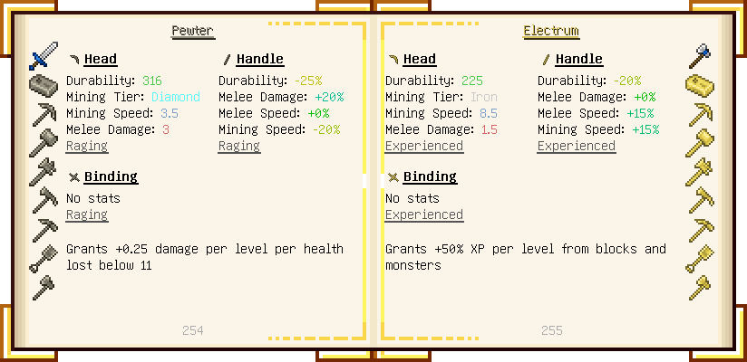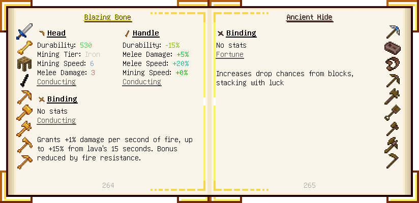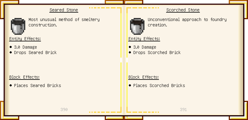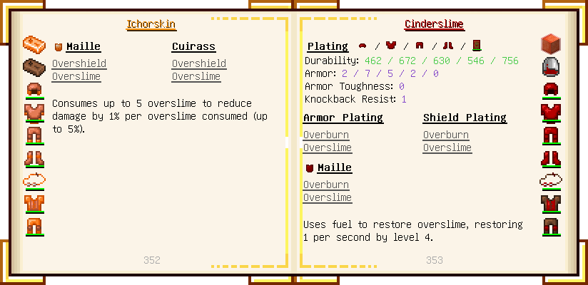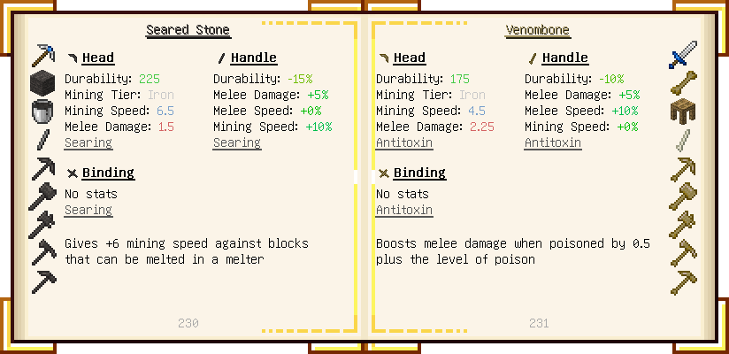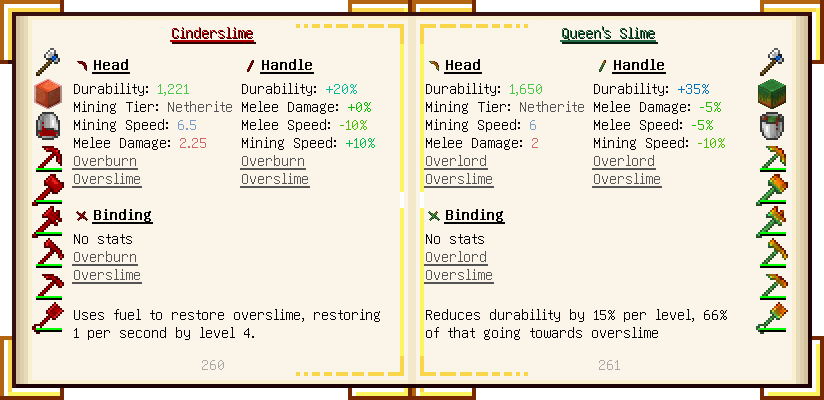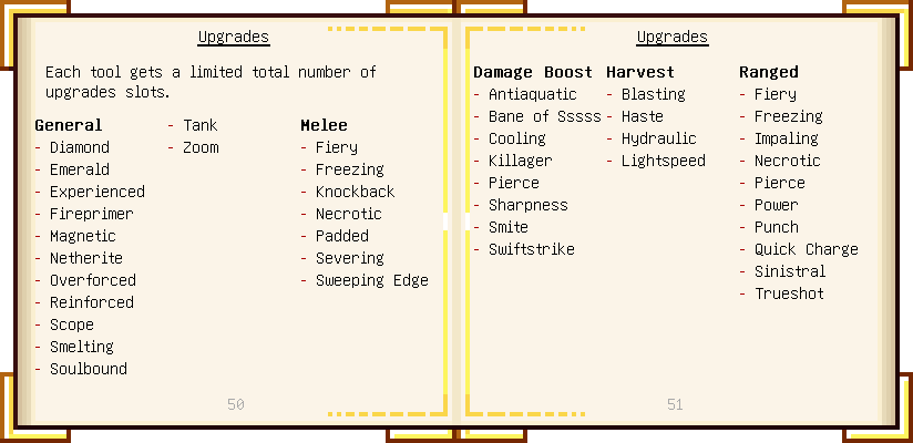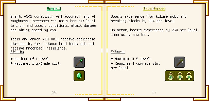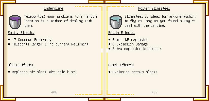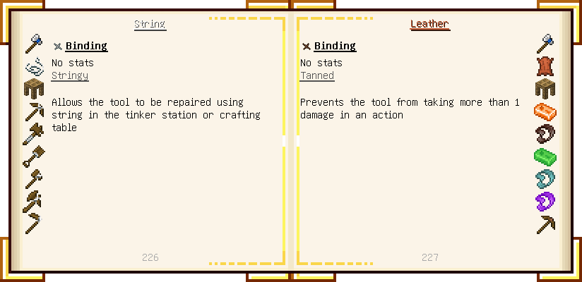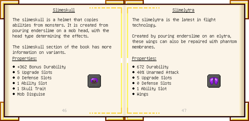 Home / Documentation / Book Index / 1.20 / Encyclopedia of Tinkering Encyclopedia of Tinkering (1.20) Tinkers' Gadgetry See below for images of all pages in Encyclopedia of Tinkering. Click a page to view in gallery mode. Introduction Tools Armor Upgrades Defense Slotless Abilities General Materials Ranged Materials Armor Materials Slimeskulls Fluid Effects