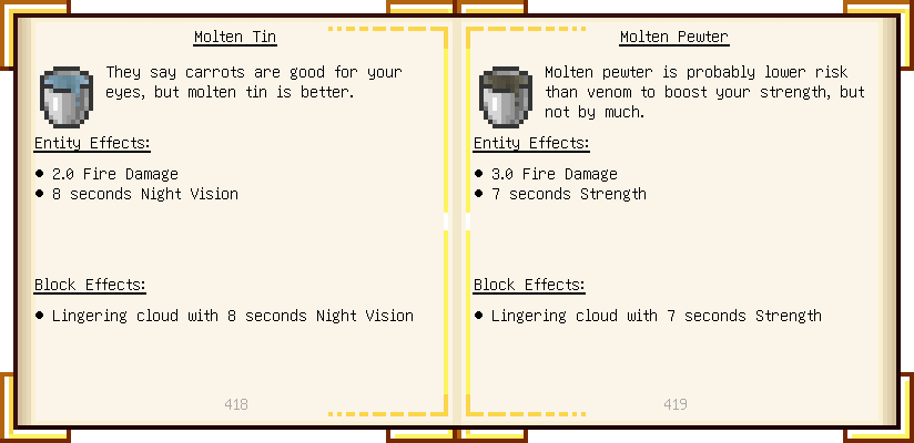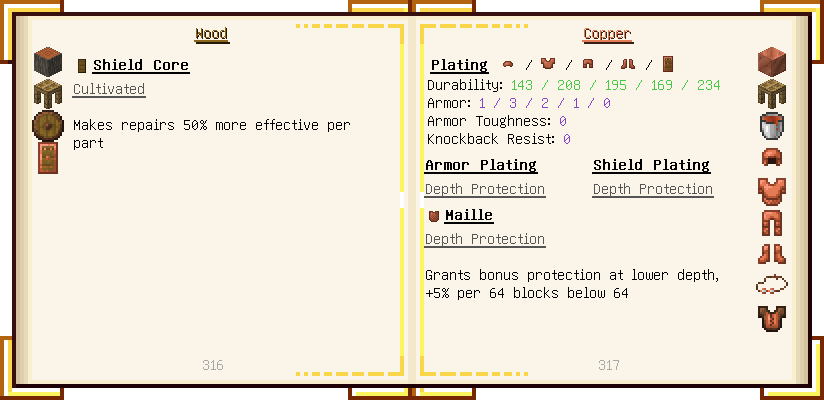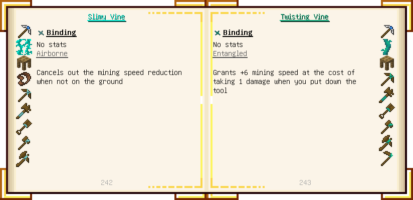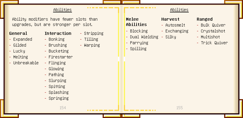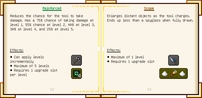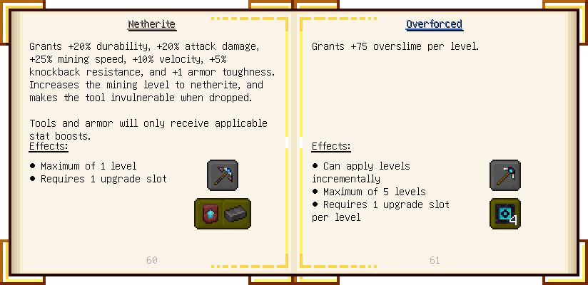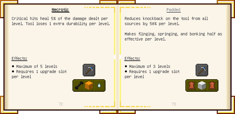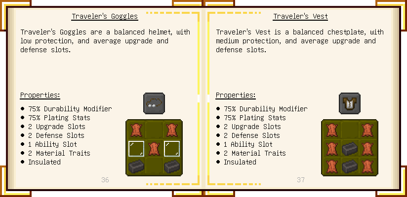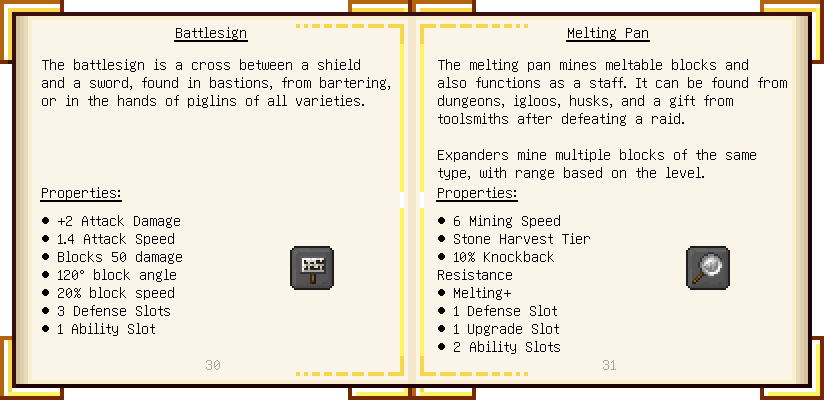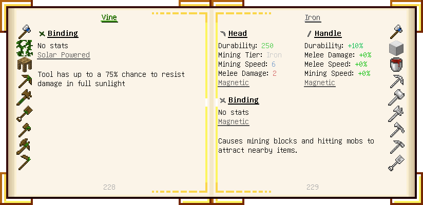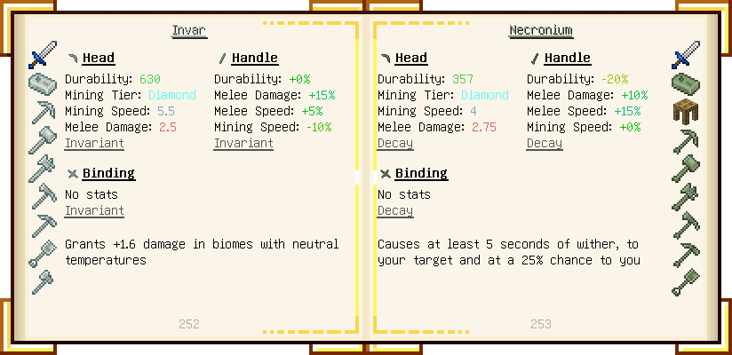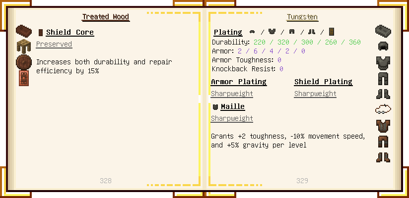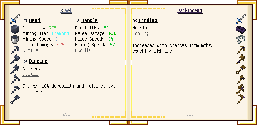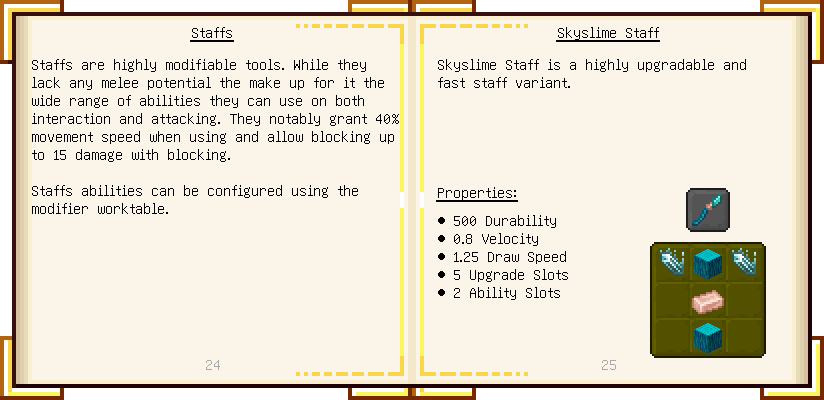 Home / Documentation / Book Index / 1.20 / Encyclopedia of Tinkering Encyclopedia of Tinkering (1.20) Tinkers' Gadgetry See below for images of all pages in Encyclopedia of Tinkering. Click a page to view in gallery mode. Introduction Tools Armor Upgrades Defense Slotless Abilities General Materials Ranged Materials Armor Materials Slimeskulls Fluid Effects
