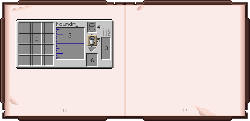 1: Place items to smelt in these slots. Foundry size determines number of slots.