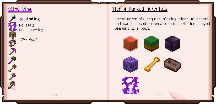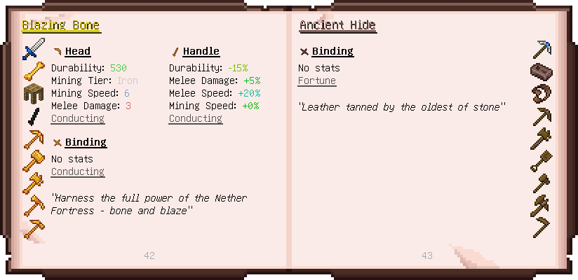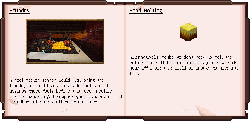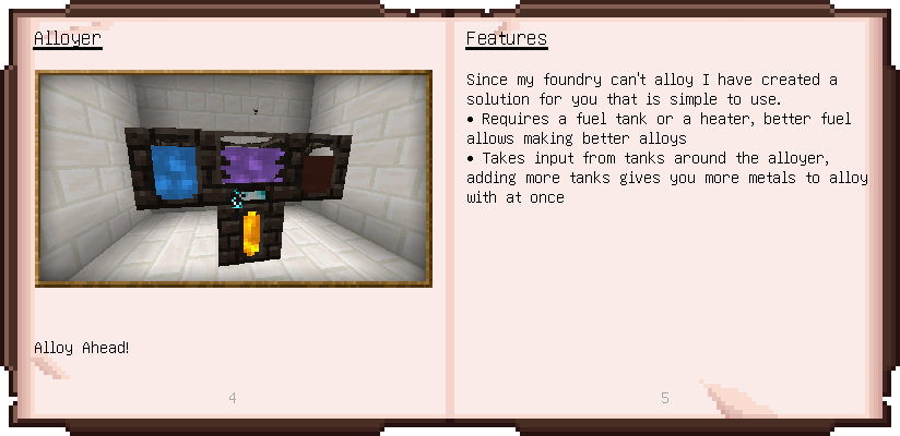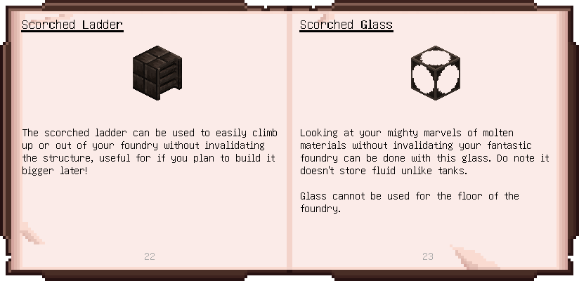 Home / Documentation / Book Index / 1.20 / Fantastic Foundry Fantastic Foundry (1.20) Mighty Smelting Tinkers' Gadgetry See below for images of all pages in Fantastic Foundry. Click a page to view in gallery mode. Introduction Alloyer Foundry Blazing Blood Tier 4 General Tier 4 Ranged Tier 4 Armor