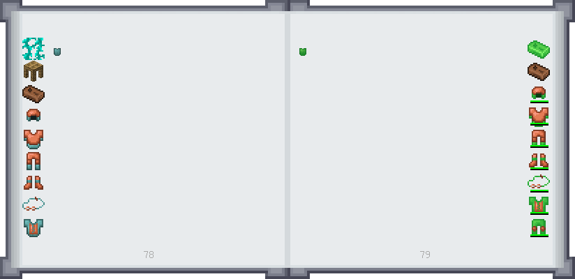 Home / Documentation / Book Index / 1.20 / Puny Smelting (1.20) Puny Smelting (1.20) Materials and You (HTML) Mighty Smelting (HTML) Slimy Vine MailleSkyfall "Float like a butterfly, sting like a bee." Slimeskin MailleOvergrowth Overslime "Do slimes even have skin?" Click on the arrows, icons, and links to navigate the book.