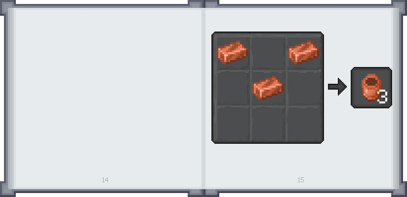 Home / Documentation / Book Index / 1.20 / Puny Smelting (1.20) Puny Smelting (1.20) Materials and You (HTML) Mighty Smelting (HTML) Copper CansCopper cans (and buckets!) can be used to manually transfer fluids around. Copper cans hold 1 ingot worth of fluid. Copper cans will stack up to 16. Copper Can Crafting Click on the arrows, icons, and links to navigate the book.