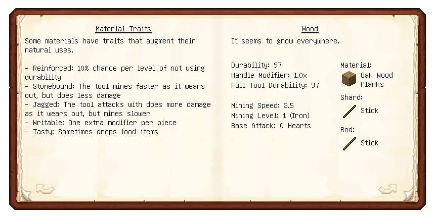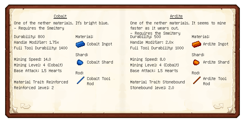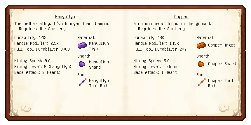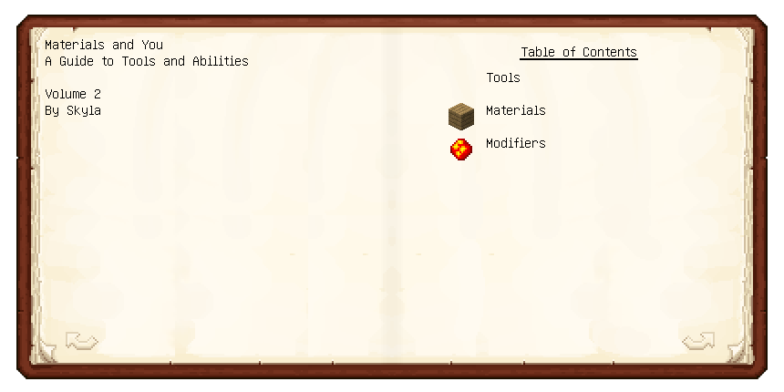 Home / Documentation / Book Index / 1.7 / Materials and You: Volume 2 Materials and You: Volume 2 (1.7) Materials and You: Volume 1 Mighty Smelting See below for images of all pages in Materials and You: Volume 2. Click a page to view in gallery mode. Tools Materials Modifiers