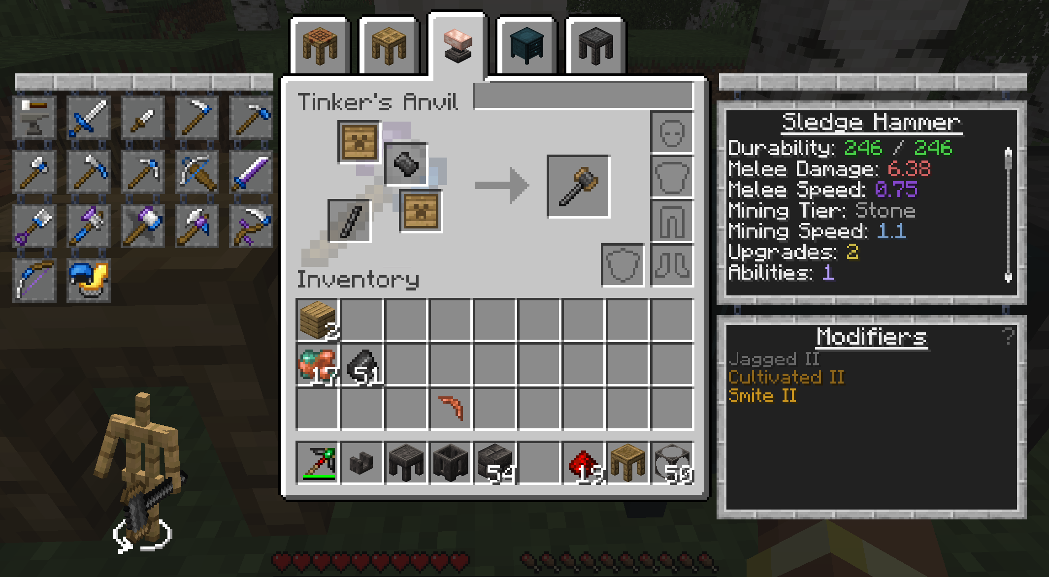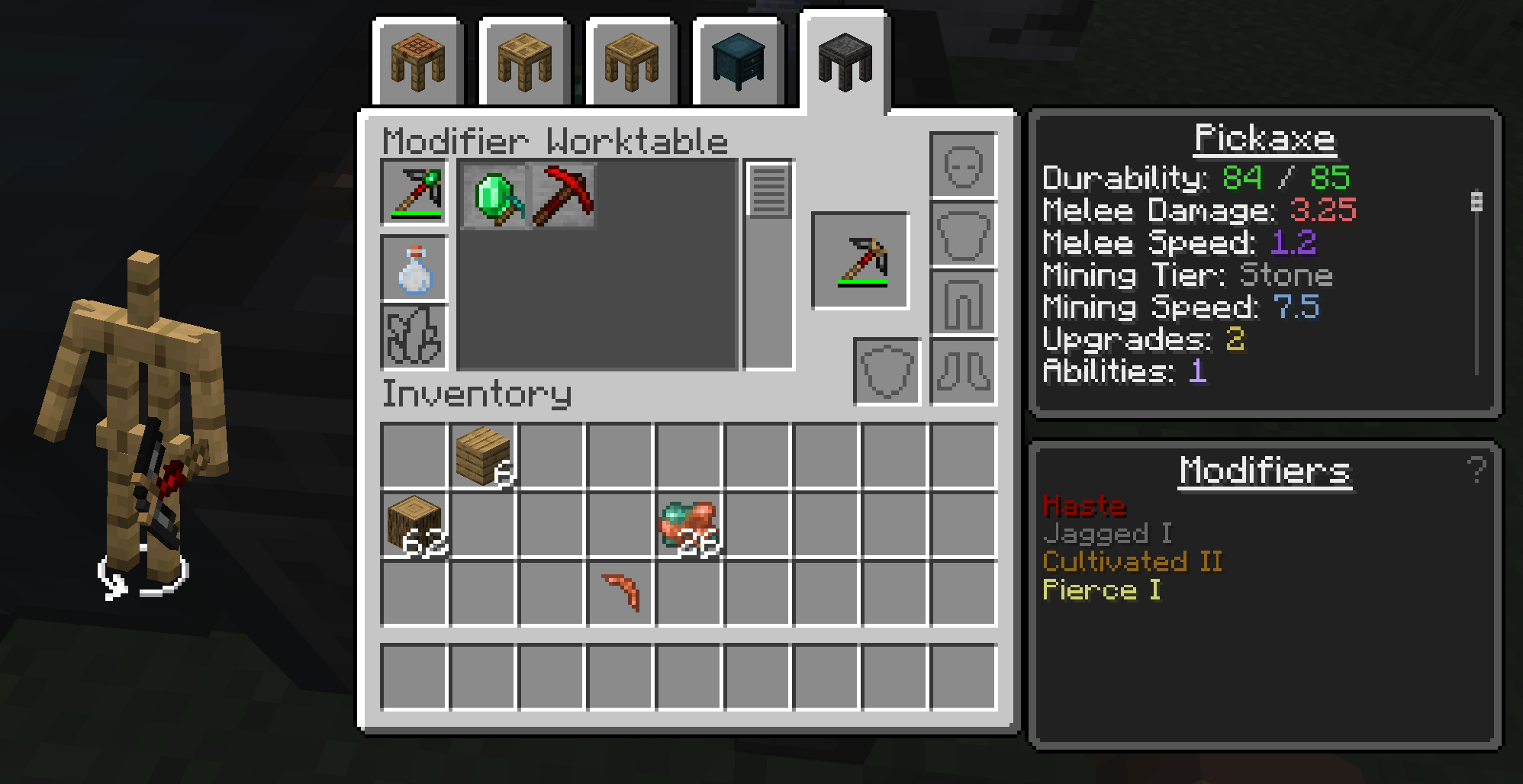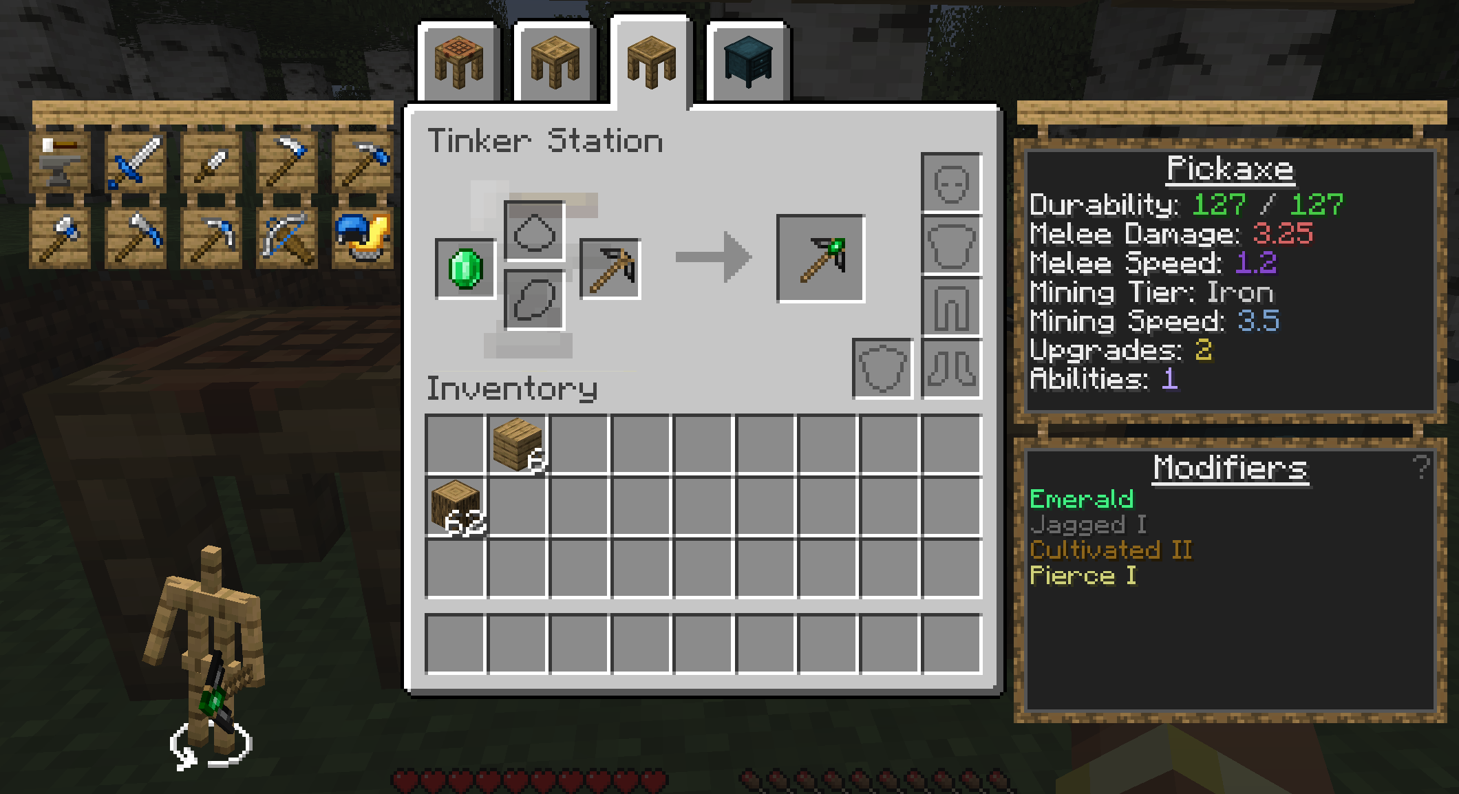 As you explore the world, you will gain materials which can be used to modify tools, giving them new abilities. Many modifiers can be applied in the tinker station directly.