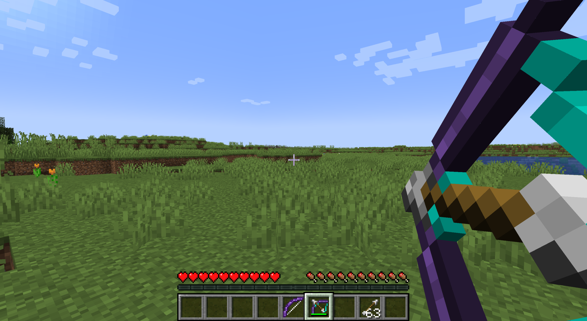 This mod also has a multipart ranged weapon, the short bow. Shortbows have a bit less velocity and accuracy, but make up for it by allowing you to run at nearly full speed while drawing back the bow. This takes advantage of a feature that will be used in the future for Tinkers’ Construct traveler’s shield.