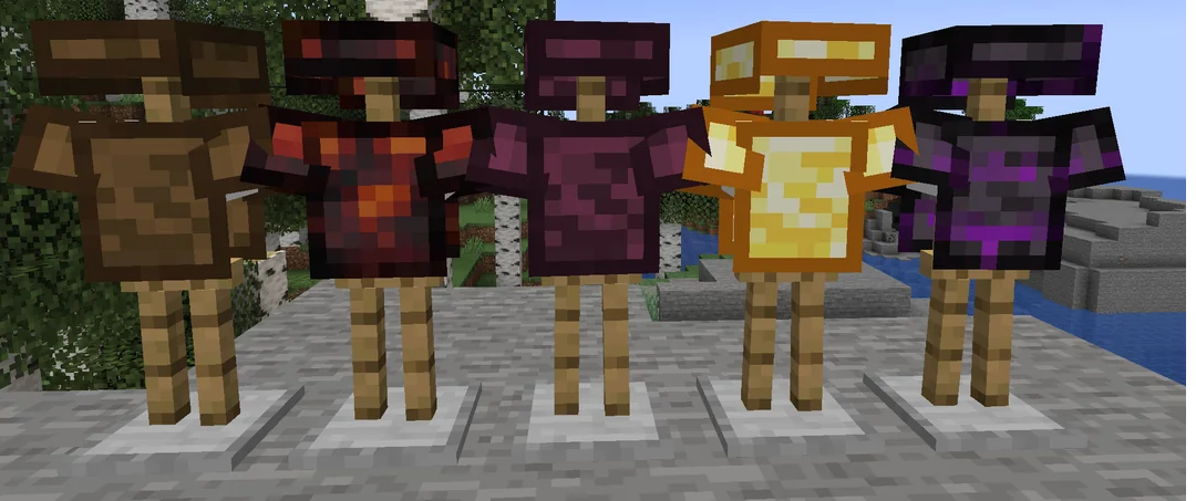 Moving on from Tinkers’ Things specific features to features in the new Tinkers’ Construct build, the palettes for all wood variants got updated to better match their plank variants (old colors were based on the logs, but did not always give the expected the user might expect). This notably stood out on plate shields, but also is notable on laminar armor and makeshift armor.