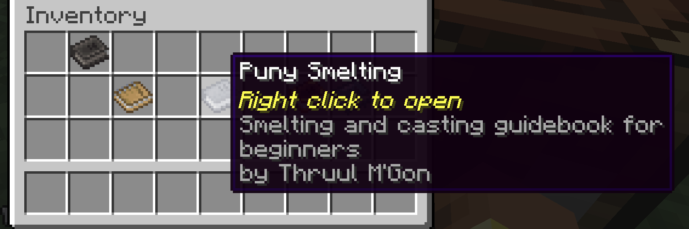 Engineering advancements have discovered a new way to read books! In addition to opening them in your hand and placing them in lecterns, you can also now open them from the inventory on right click using the “bundle interaction”. Note this only works if the tool is in the inventory, not from a chest.