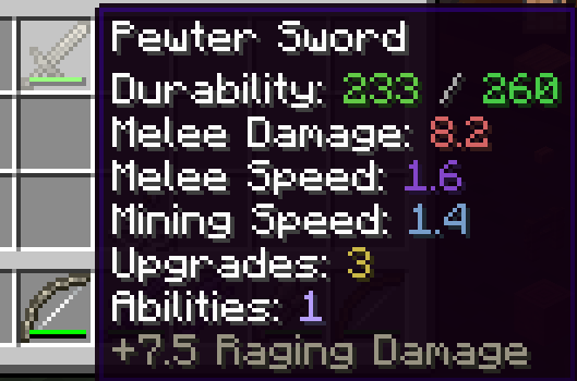 Pewter as a melee weapon grants the trait raging, which boosts your melee damage/projectile damage when your health is low. You might recognize this trait from bloodbone, which was removed back in 1.19. On armor, pewter grants vital protection, which boosts your protection when your health is low.